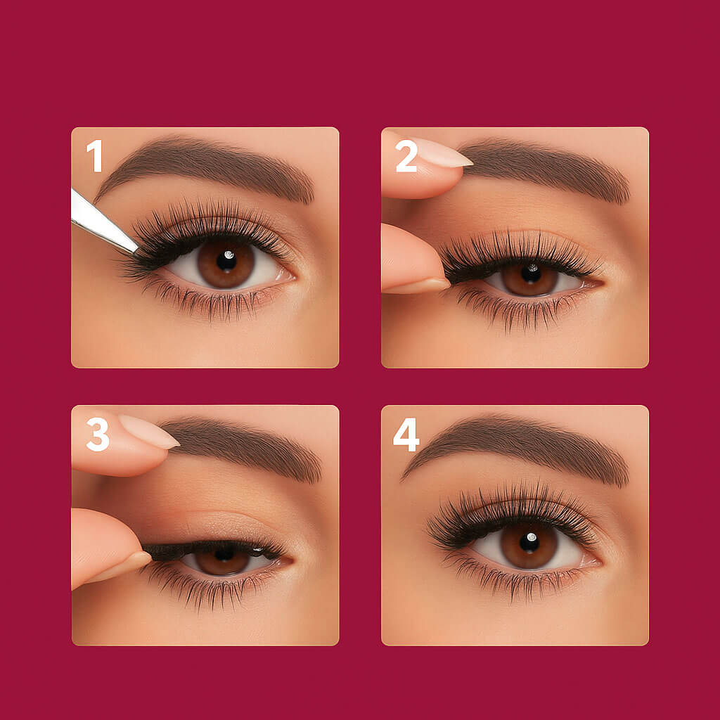 Étape 3 : Appuyez légèrement avec vos doigts ou une pince pour fixer le tout. Et voilà, un regard sublimé en quelques secondes, sans colle ni effort.